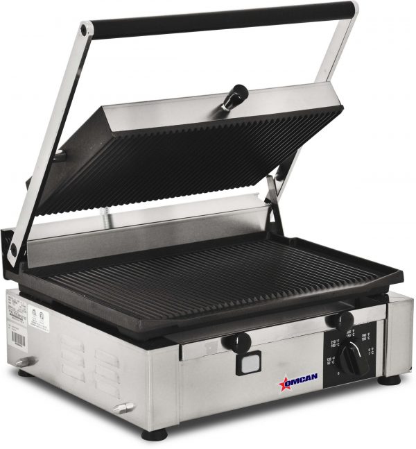 It is ideal for quesadillas, panini, focaccia, and pita sandwiches. Stainless steel constructed bodies with cast iron grilling surfaces for easy cleaning.