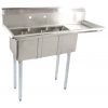 24” x 24” x 14” Three tub sink with corner drain & 4 faucet holes and left drain board